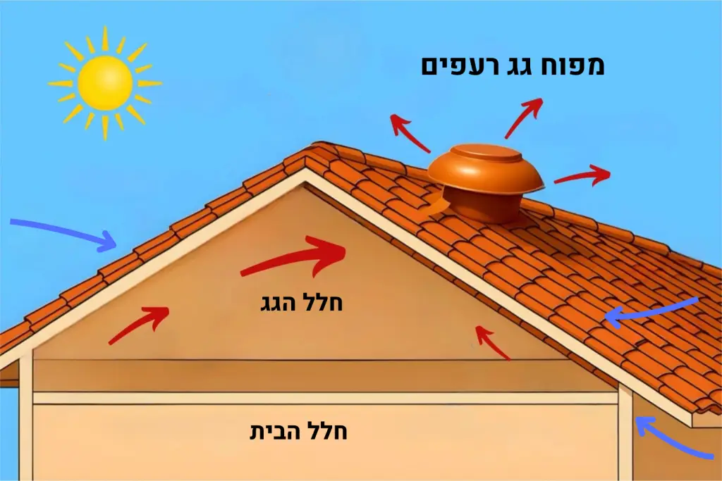 גגות רעפים קולטים את קרינת השמש לאורך כל שעות היום. החום נלכד בחלל שמתחת לרעפים ואינו משתחרר החוצה. ללא פתרון אוורור מתאים, הטמפרטורה בעליית הגג ובחדרים העליונים עלולה לעלות בעשרות מעלות, ולהשפיע על כל הבית. בנוסף, הלחות הטבעית הנוצרת במטבחים, חדרי רחצה ומקלחות נוטה לעלות כלפי מעלה ולהיתקע תחת הגג – דבר שיוצר תחושת מחנק ואף תורם ליצירת עובש.